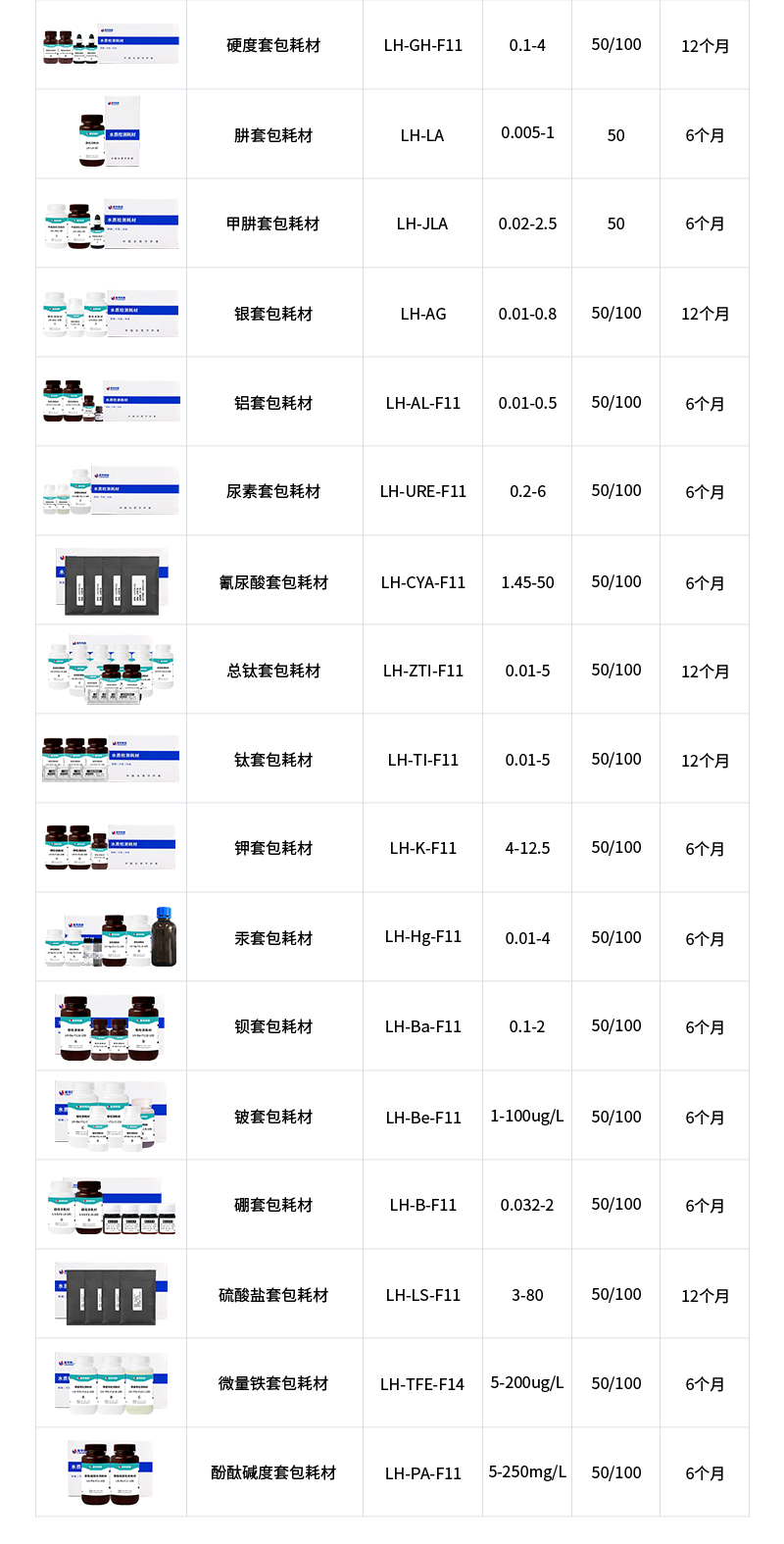 水質污染物液體耗材技術參數: